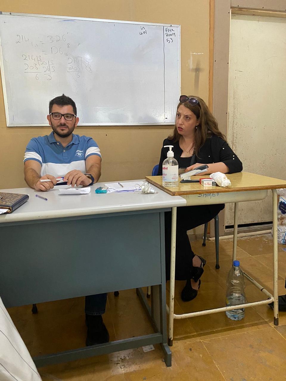 صرحت المديرة بوجود 283 نازحًا في مدرسة مي الأولى و280 نازحًا في مدرسة مي الثانية، مع تقديرات بأن العدد الإجمالي قد يصل إلى 1000 نازح. أكدت المديرة أن عملية دخول النازحين تمت بشكل عشوائي في البداية ولاحقاً جرى تنظيمها. أفادت المديرة بأن جمعية “الصلح والإرشاد” توفر الطعام ومواد التنظيف، لكن الكميات لا تكفي جميع النازحين. كما يقوم مستوصف الكرمة بتقديم الأدوية، في حين تقدم منظمة ICA الرعاية الصحية الأساسية. بالإضافة إلى ذلك، قامت منظمة كاريتاس بتقديم الفرش والحرامات والمخدات، ولكن الكميات المقدمة لم تكن كافية.