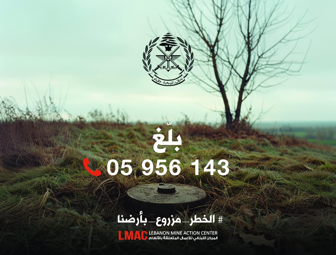 📞 أبلِغ المركز اللبناني للأعمال المتعلقة بالألغام (LMAC): 05 956 143