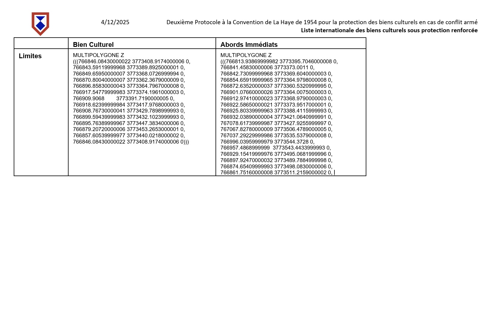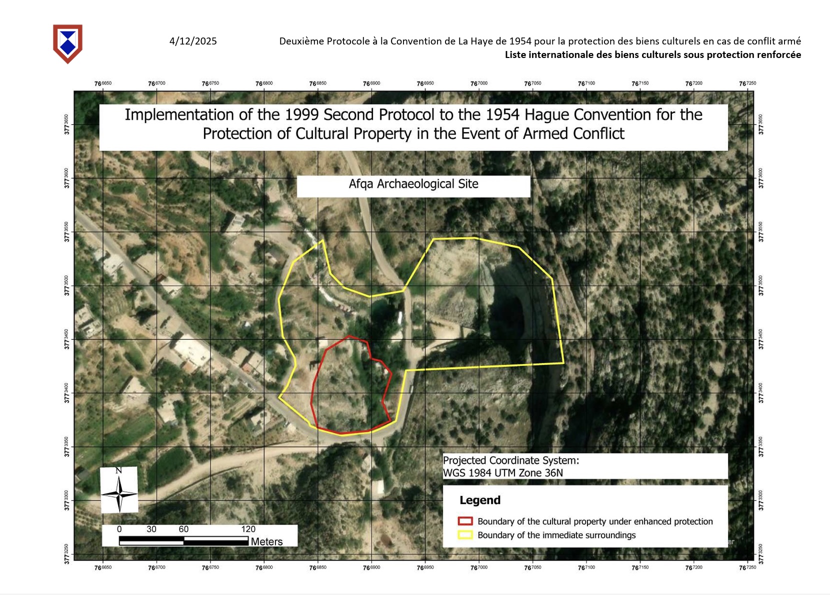 Provisional enhanced protection was granted to the Afqa Archaeological Site on 18 November 2024 by the Committee for the Protection of Cultural Property in the Event of Armed Conflict during its fourth extraordinary meeting (Decision 4 EXT COM 4.2) (UNESCO, November 2024), through the adoption of the Statement of Provisional Inscription of the property on the International List of Cultural Property under Enhanced Protection, as follows: